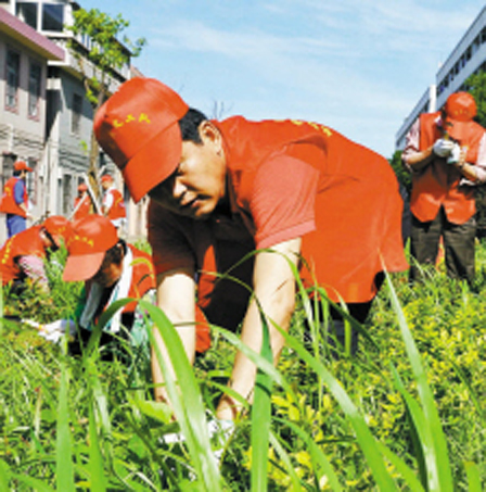 連日來,北侖新碶街道的黨員義工隊在轄區(qū)內(nèi)清理綠化帶里的雜草和垃圾。圖為百合社區(qū)的60多名社區(qū)黨員義工在參與清理工作。
