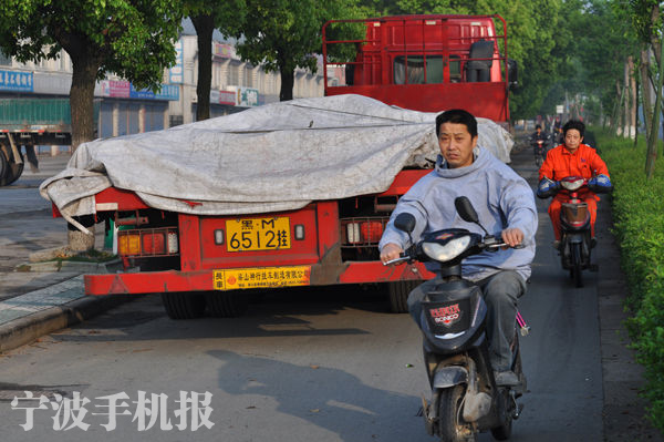 中國寧波網(wǎng)手機(jī)記者158****1750:今天上午(28日)一輛“黑M6512”大型掛車違章停放在興寧路與世紀(jì)大道口附近一個中石化加油站旁的慢車道上,上班族的自行車被迫駛向快車道,希望司機(jī)朋友們切勿亂停放車輛,做個文明禮貌的好司機(jī)!