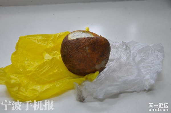 中國寧波網(wǎng)天一論壇網(wǎng)友 塵影:6月2日,于北侖家樂福購買ST袋裝胡柚,價格2.28一袋,每袋2個。當時也沒仔細看,感覺外觀鮮黃,覺得應(yīng)該不會差,回家后剪開外面的網(wǎng)兜,這時真相顯現(xiàn)。霎時目瞪口呆,被雷翻的同時,憤怒異常,提醒廣大百姓同志在家樂福買東西一定要仔細。同時非常意外,這樣的產(chǎn)品居然也能進超市?難道超市沒有質(zhì)檢這一關(guān)的嗎?
