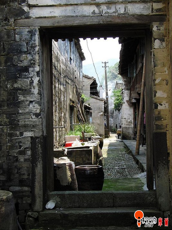 這是奉化市溪口鎮(zhèn)班竹村的一棟老房子,從大門看過去,里面房子的炊煙正在升起,幾百年的滄?虅澰诜课莸膲Ρ谏稀