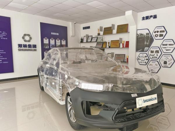 雙林股份展廳內(nèi)的透明汽車(chē)模型。