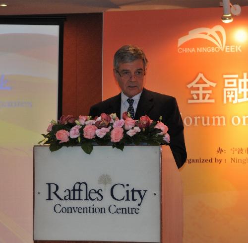 中國寧波網(wǎng)訊11月12日下午,金融業(yè)合作暨寧波企業(yè)新加坡上市論壇在新加坡萊佛士會(huì)議中心舉行。寧波市政府副秘書長陳國強(qiáng)與新加坡銀行公會(huì)主席、華僑銀行行長康大衛(wèi)分別為論壇致辭。寧波市銀行業(yè)協(xié)會(huì)與新加坡銀行公會(huì)合作協(xié)議簽定。